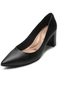 - Matte leather-look upper- Black hue- Pointed toe- Low-cut vamp- 6.7cm covered block heel- Comfortable inner-sole with extra padding- Memory foam lined interior- Non-slip rubber sole
