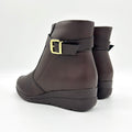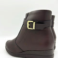 - Smooth napa leather-look upper- Coffee hue- Rounded toe- Decorative strap with a buckle- Zipper on the inner side- 3cm wedged heel- Cushioned insole- Anti-slippery rubber sole- Full memory foam liningMade in Brazil