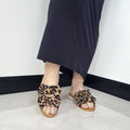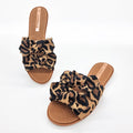 This cute flat slip-on sandal features an animal print fabric upper, perfect for summer. Pair it with anything in your summer wardrobe for an effortless, warm-weather look.