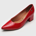 This classic pump is perfect for a day in the office or a chic after dark party. Amazingly comfortable and versatile, this is a must-have for any up-to-date wardrobe. Featuring shiny soft patent finish in popular red shade, pointy toe, block heel and a flexible padded insole.