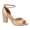 Make a serious after-dark impact in these shimmering Vizzano sandals. Resting on a comfortable block heel with an enclosed heel counter, a delicate ankle strap and an open toe design, these heeled sandals can be styled for any formal wear, perfect for pairing with breezy maxi dresses or figure-hugging minis.- Rose Gold glitter finish - Open round toe - Adjustable ankle strap- Enclosed heel counter- 8cm covered block heel- Extra cushioned inner sole- Extra comfort flexible rubber sole - Anti-bacterial inner fabric